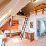 Unterm Dach wird es besonders gemütlich. Noch einmal zwei Zimmer und dann noch diese Balkenlage. Ein Traum!